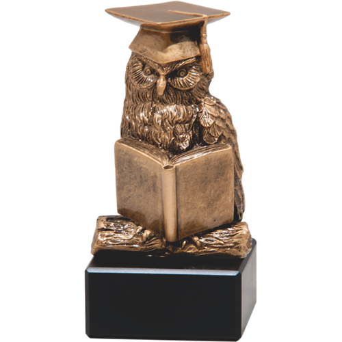 owl statuette, cast in resin, stone base