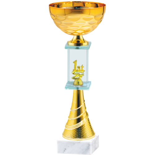 puchar - czasza metalowa 120mm - wysokość 30cm - tabliczka 70x25mm - kolumna szklana